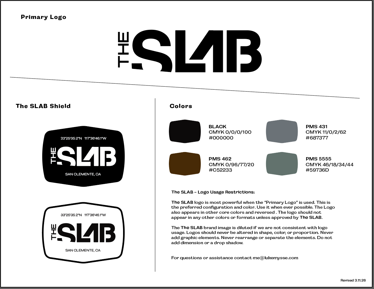 TheSLAB brand image is diluted if we are not consistent with logo usage. Logos should never be altered in shape, color, or proportion. Never add graphic elements. Never rearrange or separate the elements. Do not add dimension or a drop shadow.